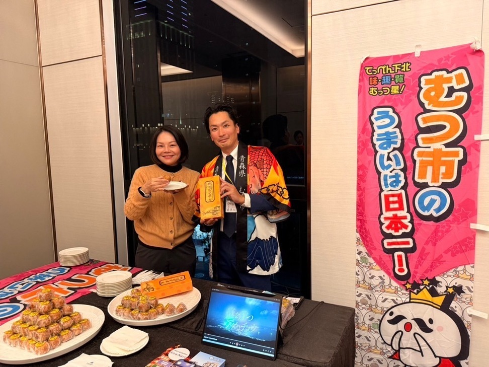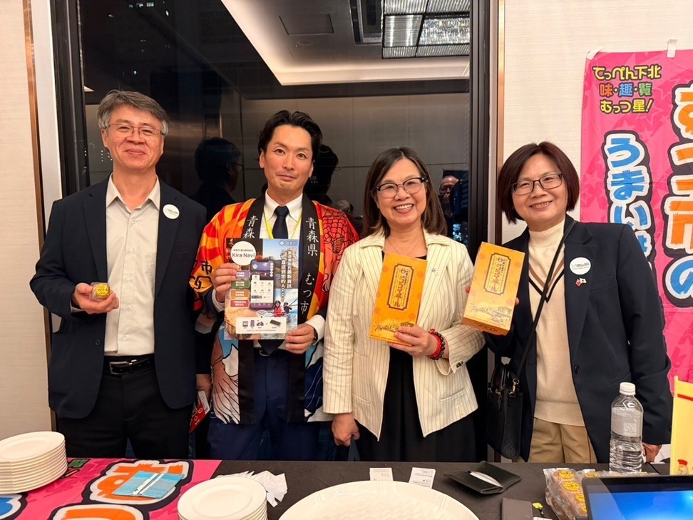 令和8年2月11日(水)、日台交流協会高雄事務所が主催している同レセプションに、むつ市のブースを出展し、参加した台湾南部における行政・ビジネス・文化関係者に対し、むつ市の観光情報やお菓子等をPRしてきました。
