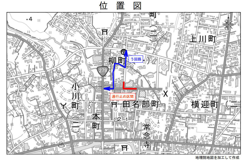 ■旧むつ松木屋の建物の一部損壊に伴い、以下の通り通行止め