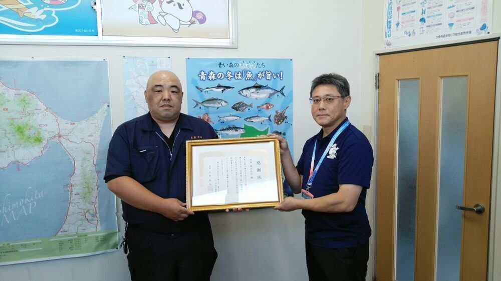 令和7年8月25日、大魚株式会社むつ総合卸売市場様訪問にて感謝状贈呈式を行いました。