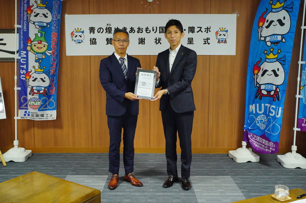 令和7年9月26日、むつ市役所にて感謝状贈呈式を行いました。