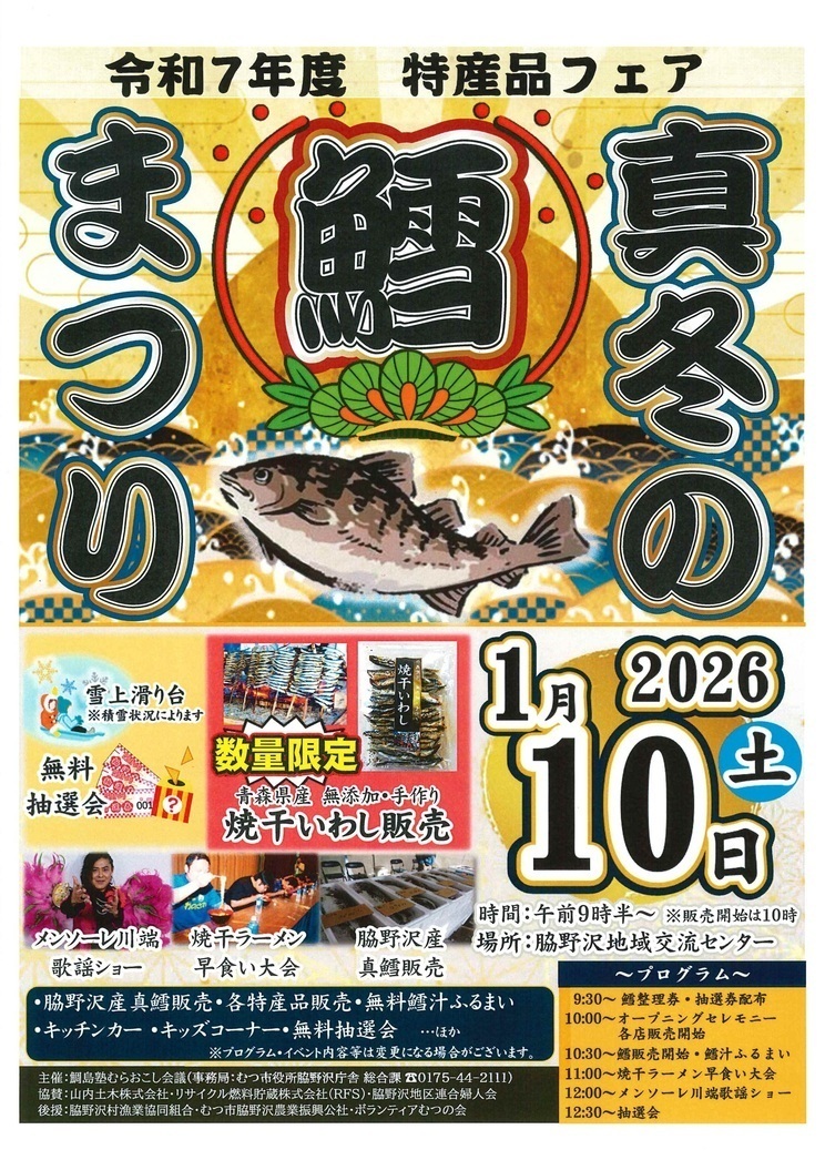 脇野沢地区特産の真鱈をメインにした「真冬の鱈まつり」を今年も開催します。
